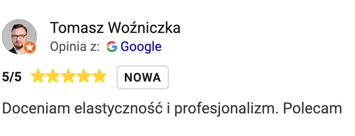 W opiniach Google 5/5. Bo każde realizowane zadanie ma być potwierdzeniem, że warto nam zaufać.